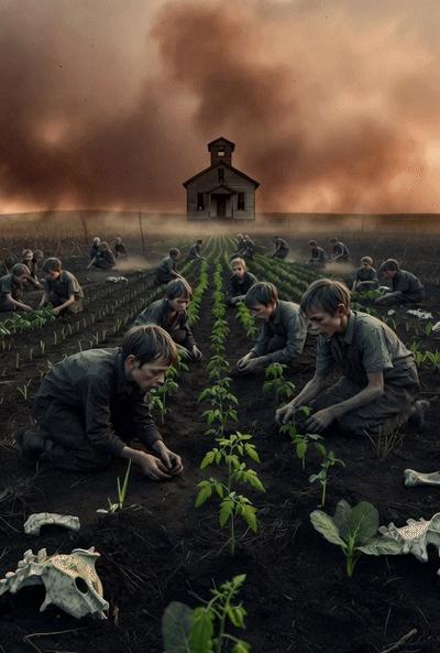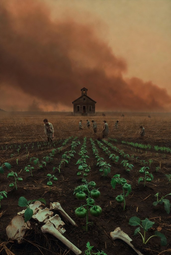 The lesson continued—water purification, protein from insects, which fungi were safe—until the sun began its descent behind the dead hills. The children filed out into the dying light, clutching their worn notebooks, their too-large clothes hanging from skeletal frames. Tommy lingered over a picture of a tomato in a salvaged gardening book, his finger tracing the bright red fruit with a reverence usually reserved for holy relics.