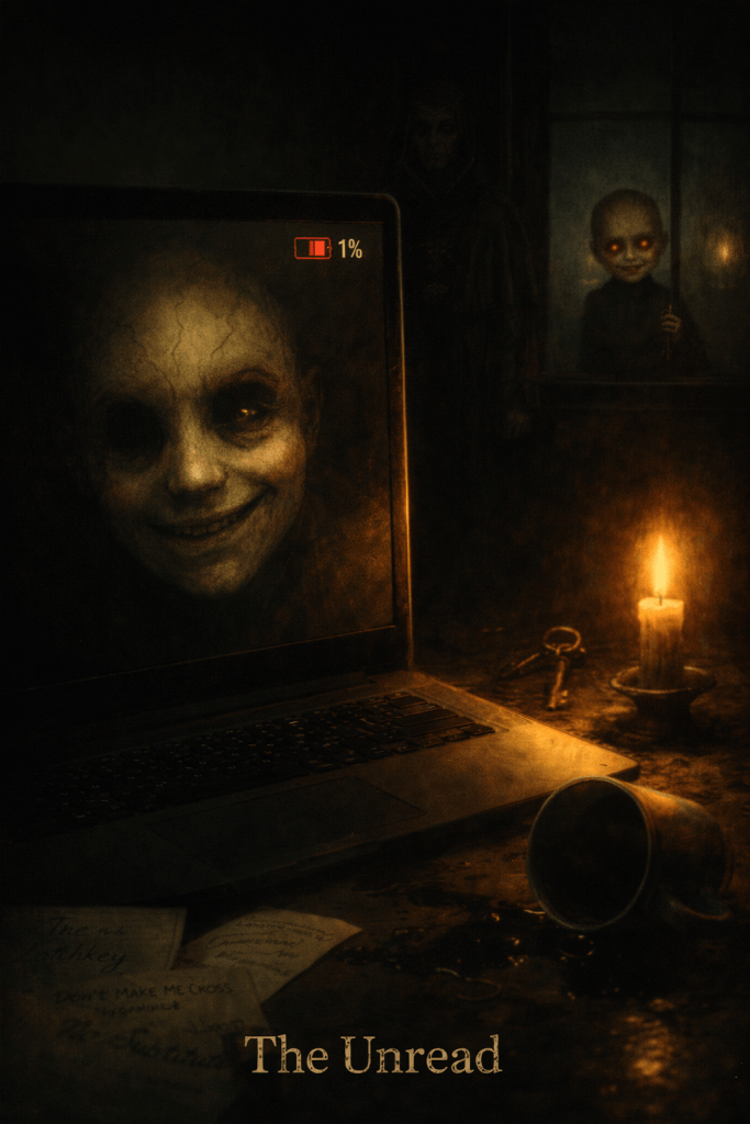 The Latchkey stepped inside. Then Mary, still holding the boy Oliver’s hand. Then the thing from the storm drain. Then the man who collected teeth. Others followed—things from stories he’d posted years ago, things from pieces he’d never finished, things he’d only imagined in passing.